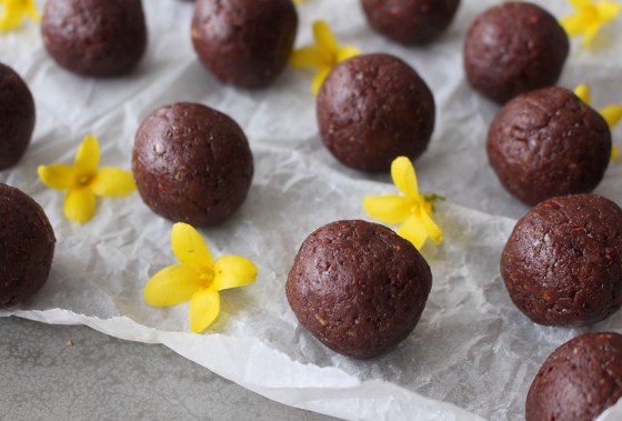Whizz all the ingredients in a food processor for a couple of minutes until they form a sticky, smooth mixture. Shape into balls and garnish with whatever the hell you like (we like goji berries and cacao nibs but the world is your vegan-raw -oyster). Store in an airtight container in the fridge (or freezer – just remember to give them a little time to defrost before you tuck in!)