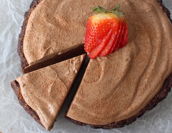 Pop the dates in a food processor and blend until they form a sticky paste. Then add in the sweet potatoes and the other ingredients and blend until a gooey and delicious chocolate-y mixture is formed. Line your slow cooker pot with baking paper and spoon in the cake mix. Try not to eat it all like we do! Slow cook it on high for another three hours, or until the top is brown and slightly hard but the middle is still gooey. Place in the fridge to cool.