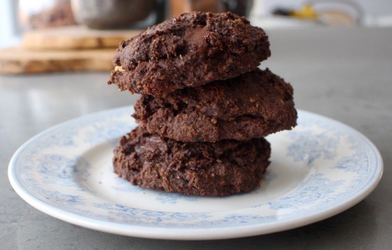 We bought one of their double chocolate peanut butter cookies, hid it in my handbag, stopped off at a juice bar round the corner to get a green juice (in our heads it cancelled out the cookie) and went and sat in the park to eat it. It was just the richest, sweetest, gooiest, chocolatiest, most amazing cookie I’ve ever had. It was so sweet I only managed a couple of bites (and all the sugar made me feel a bit jittery afterwards) but it sure did inspire me to come up with a healthy version that doesn’t cost $8 a cookie (or whatever it was) and doesn’t require queueing up for 20 minutes for! I can’t tell you how happy I am with the results – you’d never know these cookies were healthy, they’re just incredible!