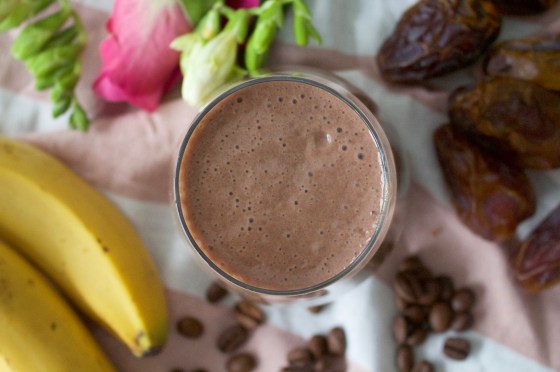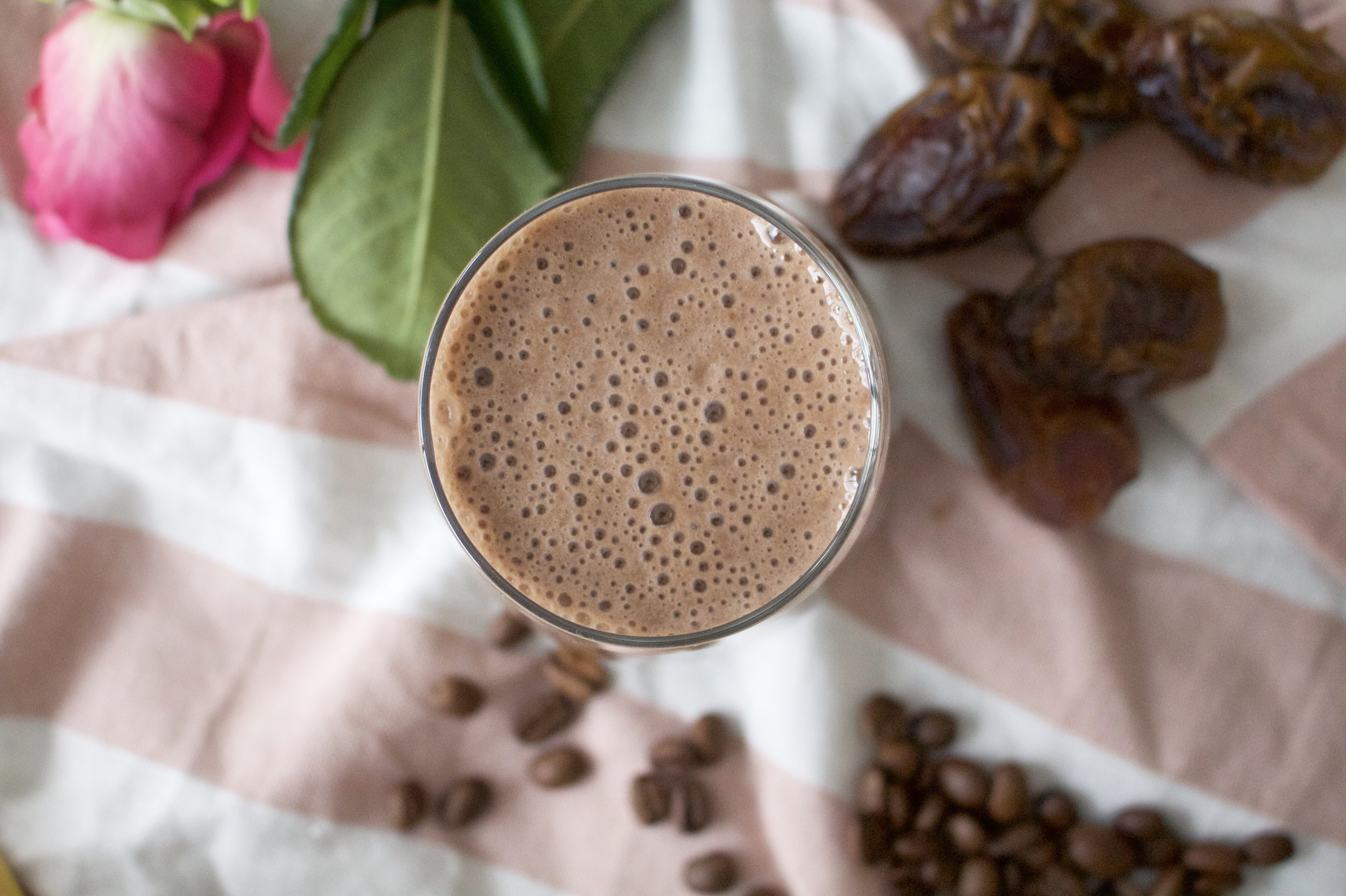 So although caffeinated coffee clearly doesn’t work for me any more, I still love the taste of it, especially so when it’s paired with sticky dates and banana ice cream and blended into a shake. Now that’s what I call coffee. It’s actually inspired by the iced coffee in Australia, as unlike here in the U.K. they seem to add in a scoop of ice cream by default, which gave me a bit of a shock when I ordered one (and subsequently had to send it back, much to the bemusement of the waiter).