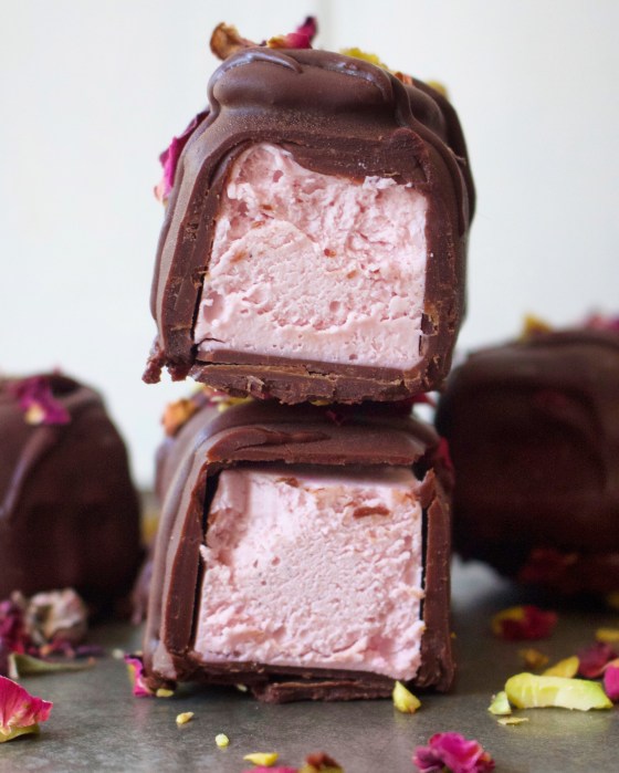 I’ve used a little bit of pink pitaya powder to give these a pretty pink colour (because pink food tastes better, right?) but they are still totally mindblowing without it. In fact you can use any natural colourings you might have lying around if you fancy jazzing them up a little! Either way, I promise whoever eats them will be seriously impressed, and I bet they won’t know there’s no dairy unless you give them a heads up!