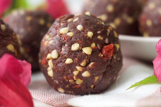 Add in the raisins and gojis and pulse for a further 30 seconds or so, then shape into balls and store in a the fridge or freezer.