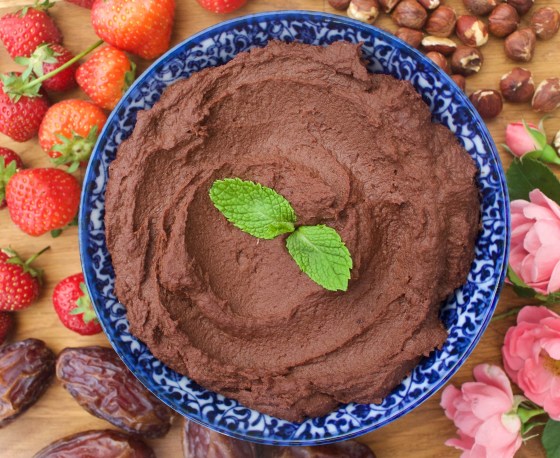 You get it, I love hummus. But I also love chocolate. And wouldn’t a sweet chocolate hummus dip be the perfect thing to smother on medjool dates, spoon onto strawberries or slather on my banana bread? Well yes. Yes it is. This stuff literally tastes like raw chocolate brownie mixture. It’s insane, and only six ingredients.
