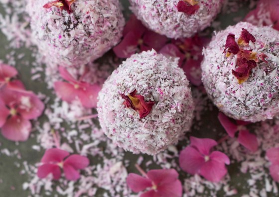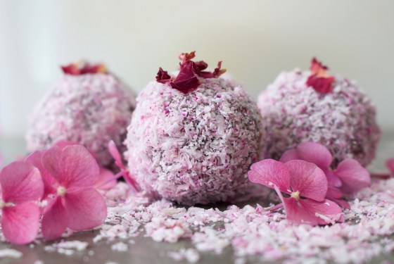 - Optional: more desiccated coconut and pink pitaya powder for rolling