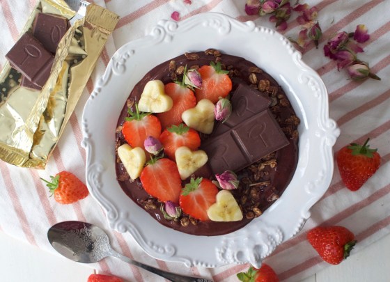 I’m not in the habit of creating elaborate smoothie bowl masterpieces, but when the lovely people at Raw Halo and Spoon Cereals sent me some of their delicious products to use I wanted to make something a little bit pretty. I’m a massive fan of chocolate and cherry at the moment, in fact I’m a little disappointed in myself for not realising how amazing the combination was earlier, so I guess I’m making up for lost time in that department. Plus you can buy frozen cherries all year round in most supermarkets, which is great as you can keep them in your freezer and chuck them into your smoothies as and when without worrying too much about best before dates, not to mention you don’t have to take the cherry stones out either!