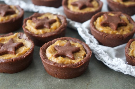 Anyway I felt like the traditional mince pie needed a bit of an overhaul, so this year I’d like to share with you my chocolate caramel mince pies. Raw chocolate pie, plus salted peanut caramel = serious festive fun.