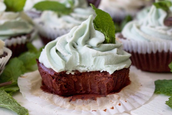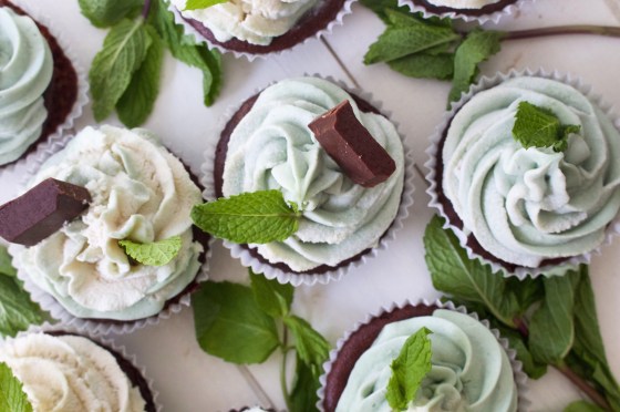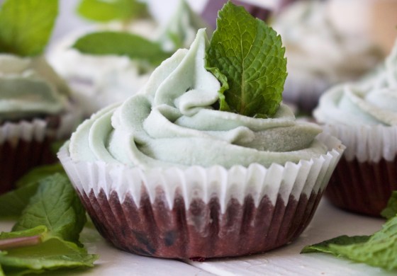 I created these cupcakes because I’d had a real craving for something of the chocolate and mint variety, but I wasn’t quite sure what. One day, in a moment of clarity, it came to me! How amazing would it be to combine a fudgy chocolate cupcake with some light minty frosting! The perfect juxtaposition if you ask me.