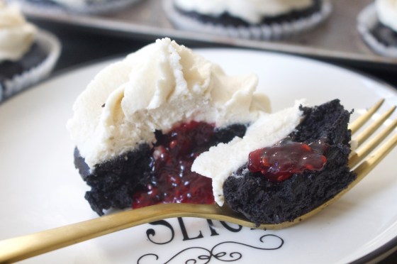 These are the ultimate Halloween treat. I wanted to make something this year that looked a little gory and spooky, and filled cupcakes are my newest obsession, so I figured that was the way forward.
