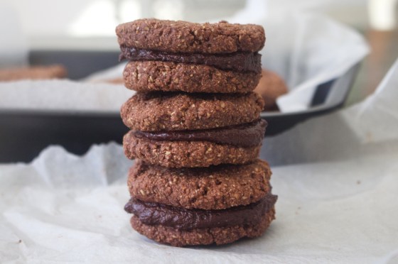 For the filling, just add the ingredients to a mixing bowl and stir well. Spoon a generous amount onto half of the cookies and place the other halves on top to make sandwiches. Place in the fridge for half an hour to allow the filling to firm up a little then enjoy!