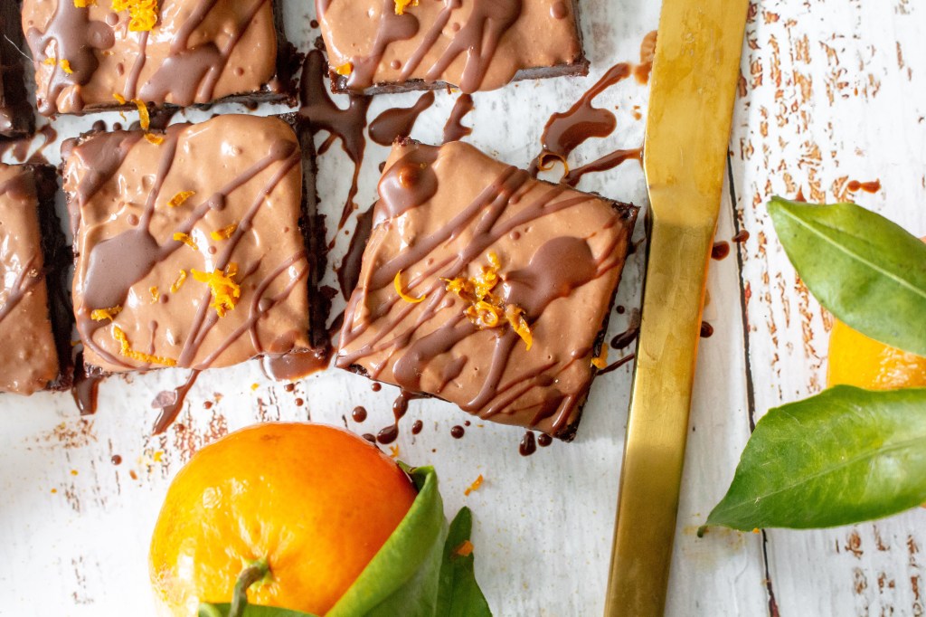 Although I disagree with people who say chocolate orange is ‘festive’ (as in my opinion it is so good it should be enjoyed throughout all four seasons) I do love it at this time of year in particular. These brownies are just the most perfect little bites and such a yummy way of showcasing my most favourite perennial flavour combo.