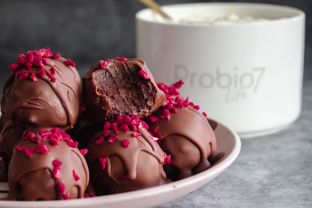I love chocolate cake – but I think I love chocolate cake pops more. A bite size little ball of fudgy amazingness, all covered in chocolate. They’re so easy to make and a great way to use up any leftover chocolate brownie mixture or cake mixture. Most cake pop recipes use frosting to bind the cake together but I’ve been experimenting using my homemade yogurt in them instead and it’s just so delicious!