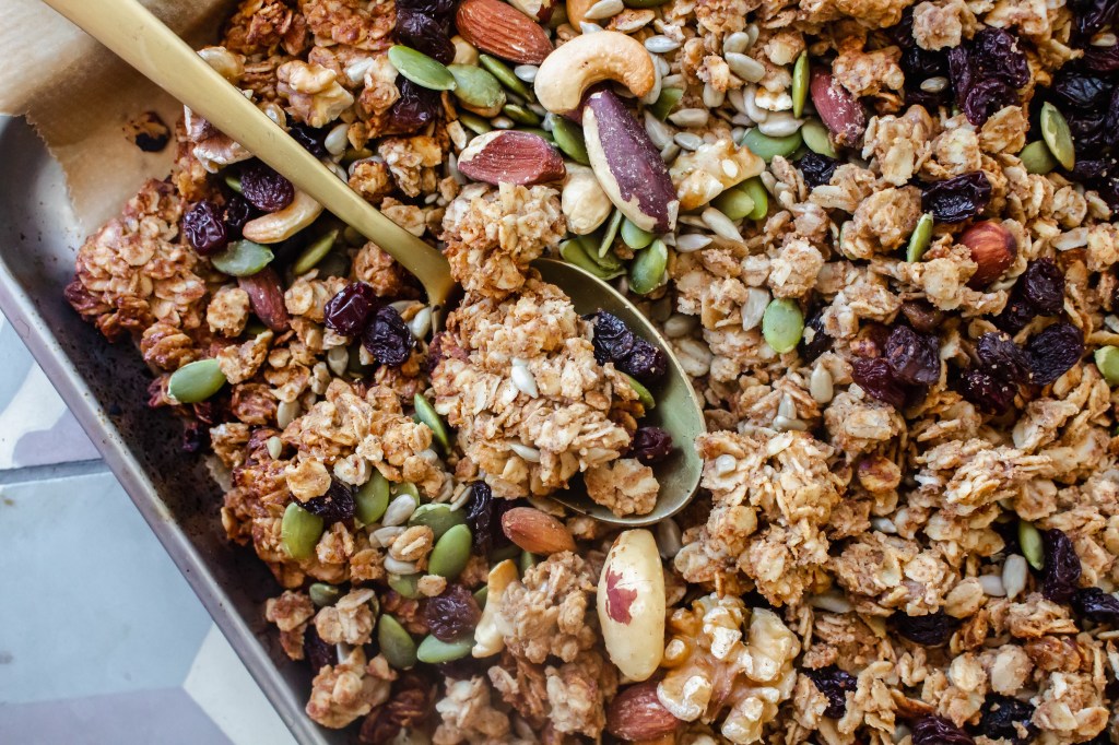 Granola is probably my desert island item; I’ve always loved putting it on yogurt and fruit bowls, on top of smoothies, or simply eating it on the rocks out of the jar. When we went away this summer we were staying in self catering accommodation, so four bags of granola made their way across the pond with me in my suitcase. I also love giving it away as presents too, it makes the nicest gift, especially if you have a Kilner style jar to pop it in.