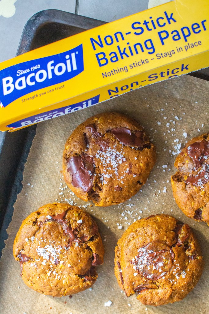 I created this recipe for my friends at Bacofoil to celebrate their fabulous baking paper. It has a new non-slip base, so it doesn’t curl up and it lies flat and stays exactly in place. It also has a non-stick textured surface, which means bakes like these cookies lift off so easily leaving nothing behind. Just what we all need hey!