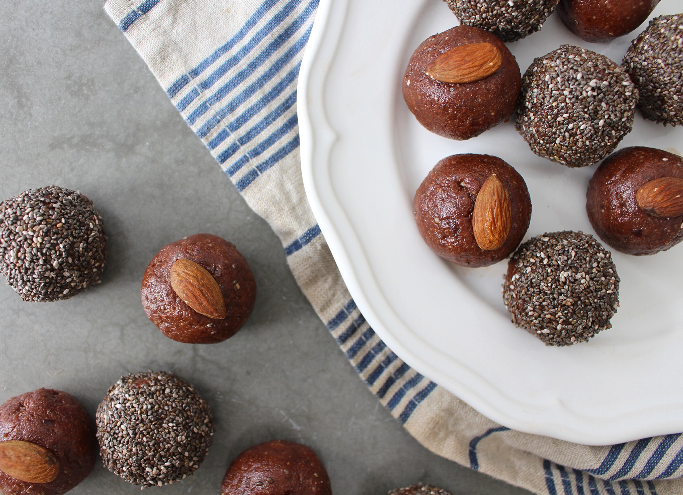 So in honour of this wonderful weekend I set myself a challenge to create something extremely chocolatey and insanely tasty. The result? The most heavenly brownie recipe that can be rolled into balls and eaten raw, no baking necessary. And boy is it good. But what makes these bites even more special is the frosting. Honestly, the frosting on these babies is every bit as decadent and delicious as real life chocolate buttercream. Even Mr H, a harsh dessert critic and fellow chocolate fiend, declared these some of the best things I’ve ever made, which is high praise indeed from such a choconnoisseur (not a word but should be).