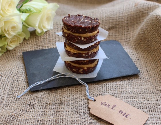 For the filling, simply whizz up the ingredients in a food processor, then create the Raweos by spreading the filling onto half of the discs and sandwiching the other halves on top. Store them in the fridge or freezer and enjoy!